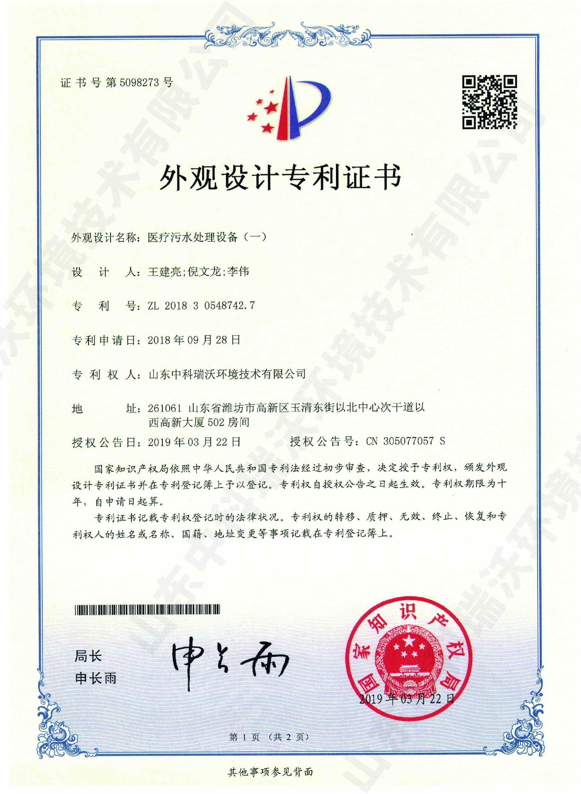 實驗室污水處理設備~外觀專利